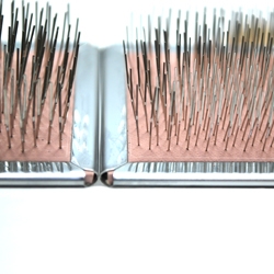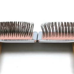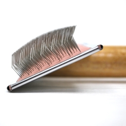 ピンの1本1本が、ハードタイプよりも細く、ピンの密集度が高く出来ています。 一般的には、短毛や柔らかい毛質の犬種に向きますが お好みもあるかと思います。