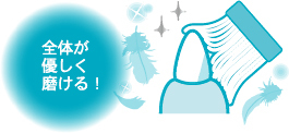 歯や歯ぐきに優しく歯磨きができ、効率的に食べかすやプラーク(歯垢)を除去します。