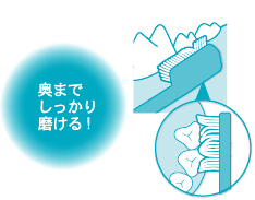 毛先を優しく小刻みにゆらすようにして、少しずつ歯を磨いていきます。