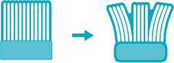 また、前歯(切歯)の細かい汚れにも対応し、上下に動かすと少し長めの毛先が軽くはねて汚れを取り除きます。