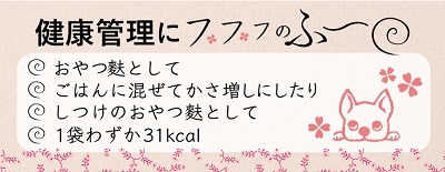 1粒の大きさは、小型犬のワンちゃんも食べやすいプチサイズです!お味はプレーン味の「プレーン麩」、スイ-ツ味の「バウム麩ーヘン」、鶏レバー味の「ローストレバー麩」、いりこ味の「麩ィッシュ」、青のり味の「青のり麩」の5種類で、小袋と大袋をご用意しております。