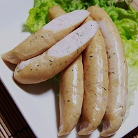 脂肪の少ないタンパク質の鶏むね肉と、コンドロイチン、コラーゲンを多く含む鶏軟骨をベースに植物性のグルコサミンやカルシウムを含む山芋、ビタミンCが多いパセリの自然食材のみを入れた無添加の手作りソーセージです。
