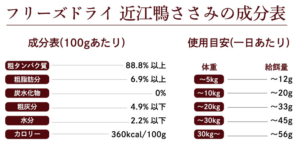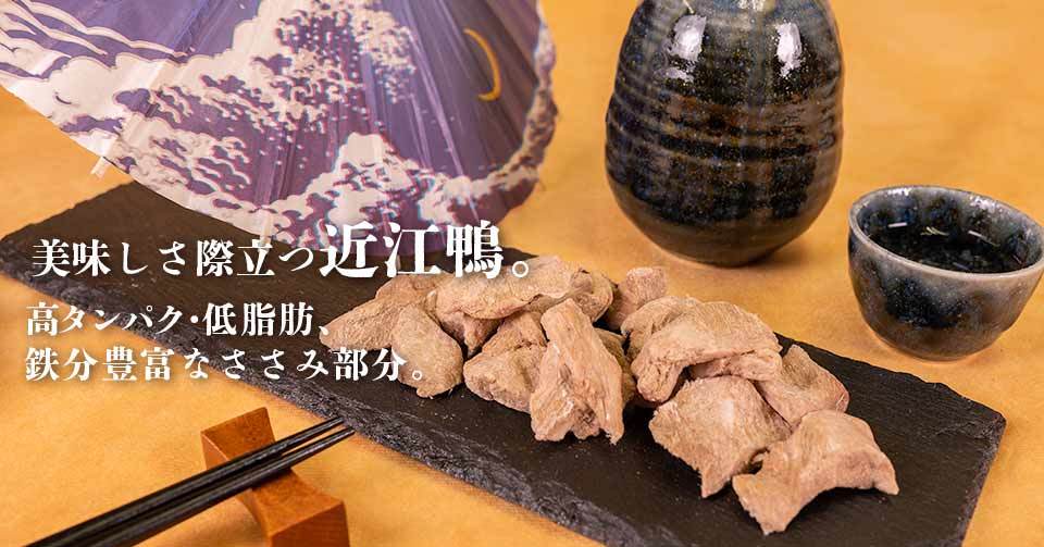 滋賀県産「近江鴨」のささみをフリーズドライ製法にて仕上げました。