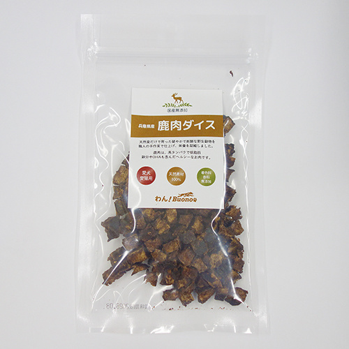 【わん!Buono】鹿肉ダイス 50g¥970(税込)鹿肉は、高タンパクで低脂肪!鉄分やDHAも含んだヘルシーなお肉です。