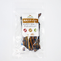 【わん!Buono】馬肉スティック 50g¥840(税込)馬肉は、高タンパクで低カロリー、鉄分やビタミンB群などが豊富に含まれるお肉です。